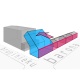 Jaunbūves funkcionālais zonējums seko ēkas kopformas lauztajai līnijai, katrā posmā paredzot atšķirīgu funkciju: